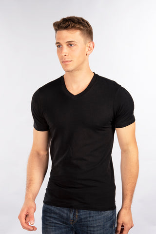 Baseball style raglan shirt with contrast color 3/4 length sleeves and collar. Features a modern slim fit, comfortable cotton blend fabric and clean curved bottom hem.